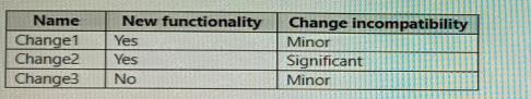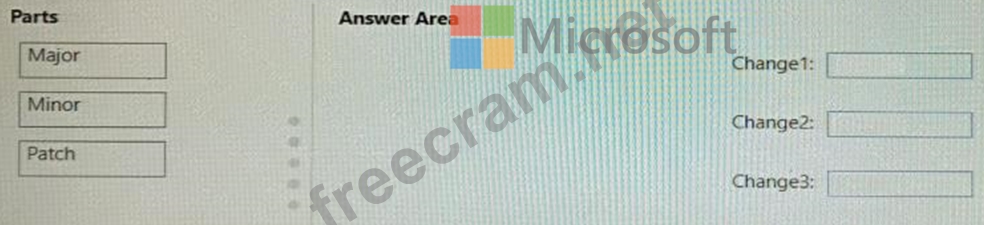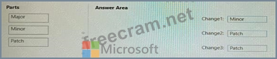 Which part ofthe version should you increment for each change? To answer, drag the appropriate parts to the correct changes. Each part may be used once, more than once, or not at all. You may need to drag the split bar between panes or scroll to view content.