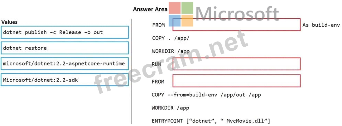 Question 46: You plan to create an image that will contain a .NET Core ap...