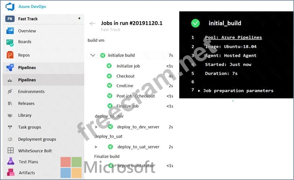 You execute a pipeline and receive the results in the web portal for Azure Pipelines as shown in the following exhibit.