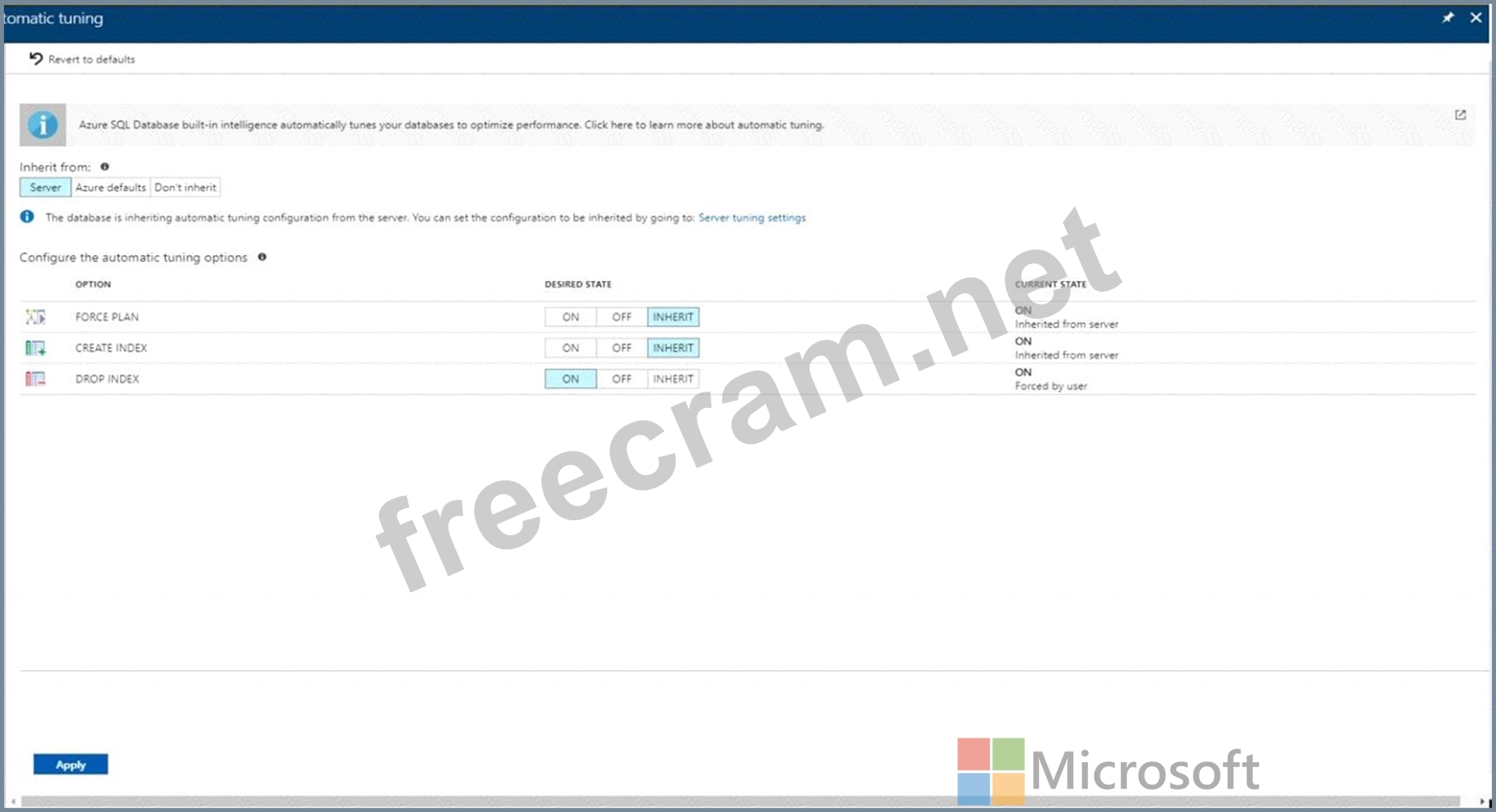 Question 70: You have several apps that use an Azure SQL Database named d...
