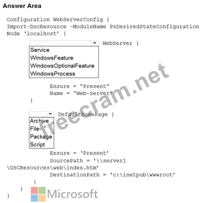 Question 110: You plan to use Desired State Configuration (DSC) to maintai...