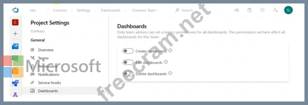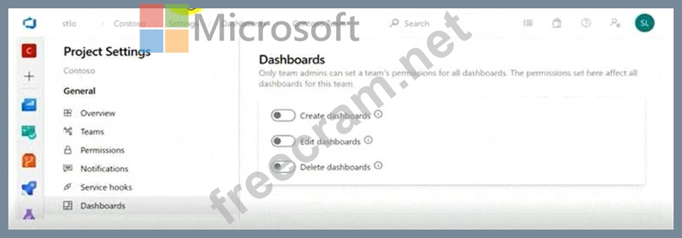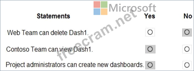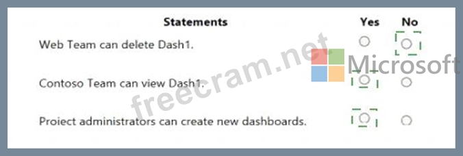 You configure the dashboard permissions for the Contoso project as shown in the Permissions exhibit (Click the Permissions tab.)