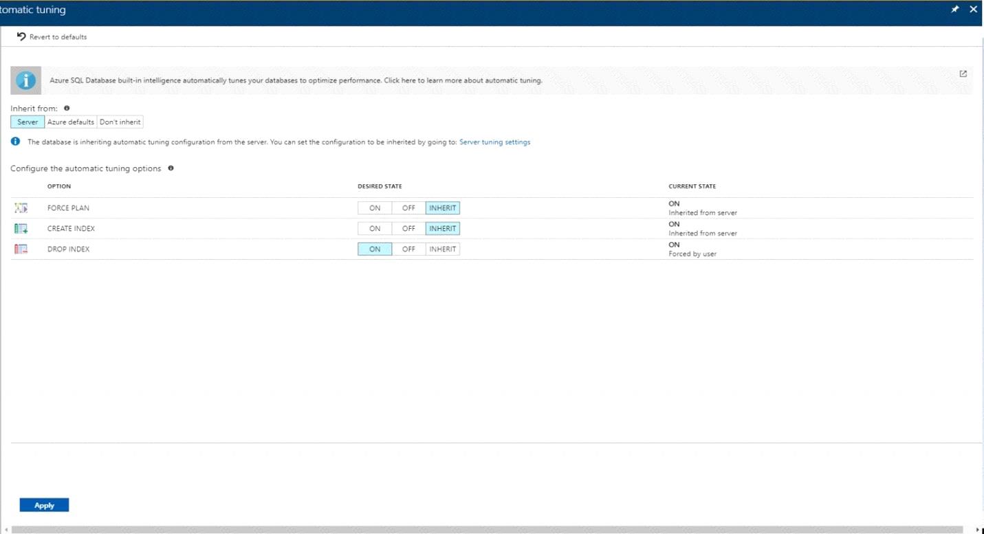 You need to ensure that queries to db1 are tuned by Azure over time. The solution must only apply to db1.