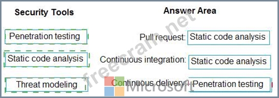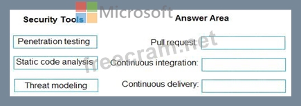 Which type of security tool should you recommend for each stage of the development process? To answer, drag the appropriate security toots to the correct stages. Each security tool may be used once, more than once, or not at all. You may need to drag the split bar between panes or scroll to view content NOTE: Each correct selection is worth one point.