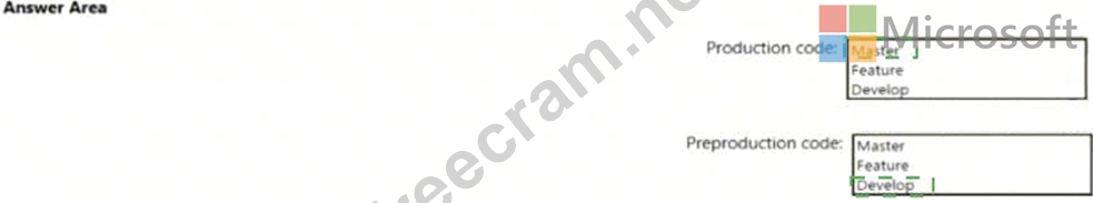 You need to identify which branch types are used for production code and preproduction code in the strategy.