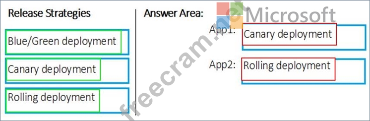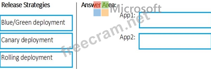 Which release strategy should you use for each application? To answer, drag the appropriate release strategies to the correct applications. Each release strategy may be used once, more than once, or not at all. You may need to drag the split bar between panes or scroll to view content.