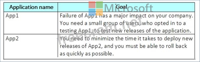 Question 98: You are defining release strategies for two applications as ...