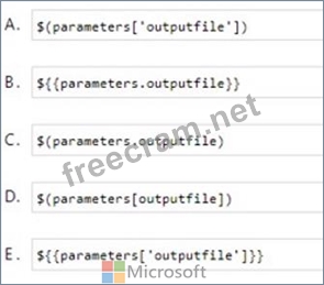 You are designing a YAML template for use with Azure Pipelines. The template Will include the Outputfile parameter.