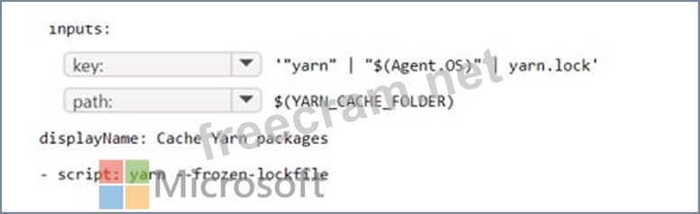 HOW should you complete the YAML definition? TO answer, select the appropriate options in the answer are a.