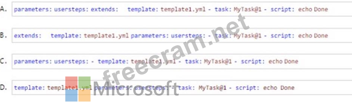 Question 68: You are designing a YAML template for use with Azure Pipelin...