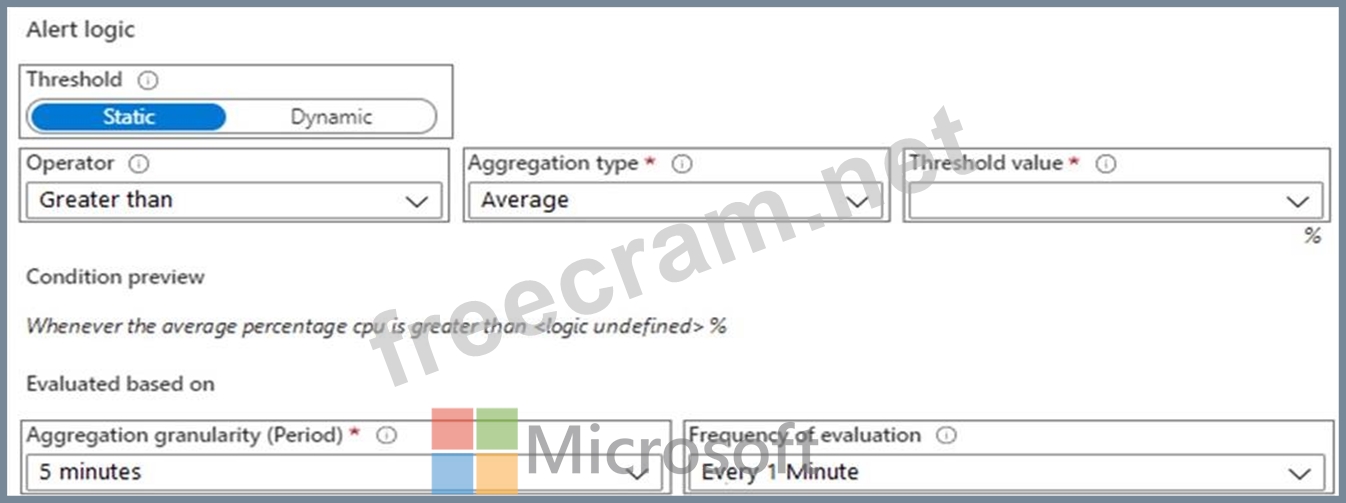 Question 153: You create an alert rule in Azure Monitor as shown in the fo...