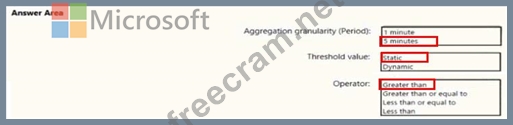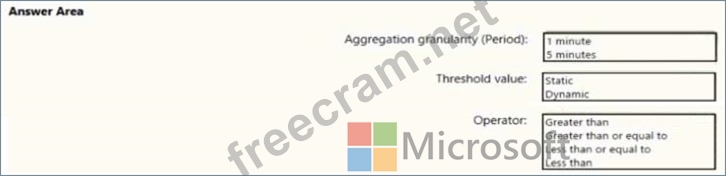 How should you configure the alert rule? To answer, select the appropriate options in the answer area.
