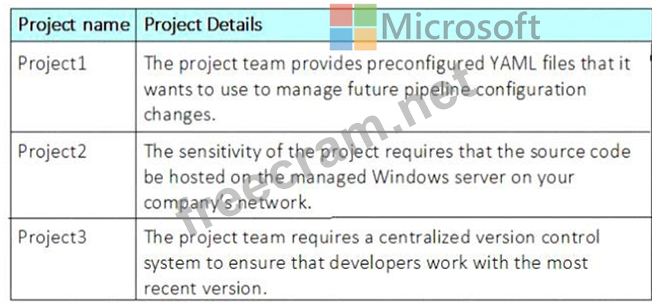 You are configuring Azure Pipelines for three projects in Azure DevOps as shown in the following table.