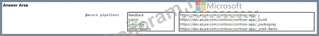 You have a project in Azure DevOps named Contoso App that contains pipelines in Azure Pipelines for GitHub repositories. You need to ensure that developers receive Microsoft Teams notifications when there are failures in a pipeline of Contoso App. What should you run in Teams? To answer, select the appropriate options in the answer area. NOTE: Each correct selection is worth one point.