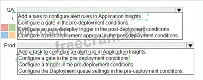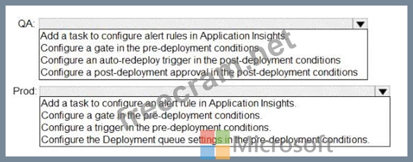 You have a project in Azure DevOps that contains a release pipeline. The pipeline contains two stages named QA and Prod. QA deploys code to an Azure web app named webapp1. Prod deploys code to an Azure web app named webapp2.