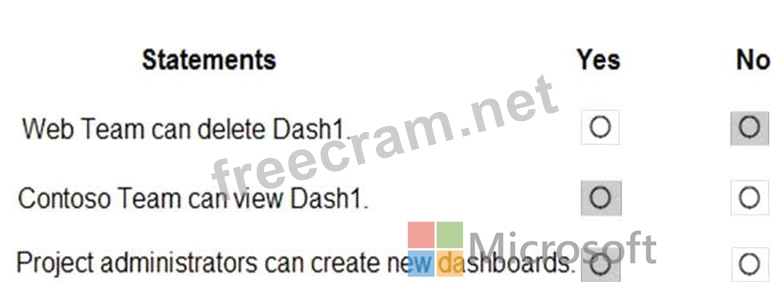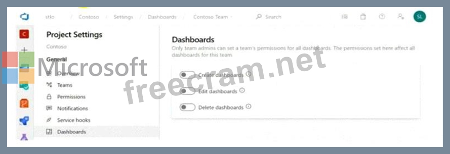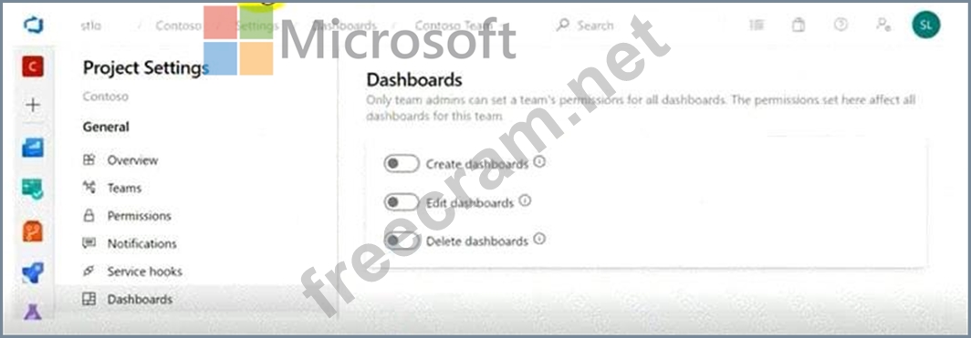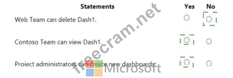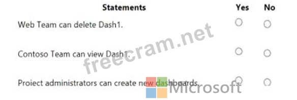 You configure the dashboard permissions for the Contoso project as shown in the Permissions exhibit (Click the Permissions tab.)