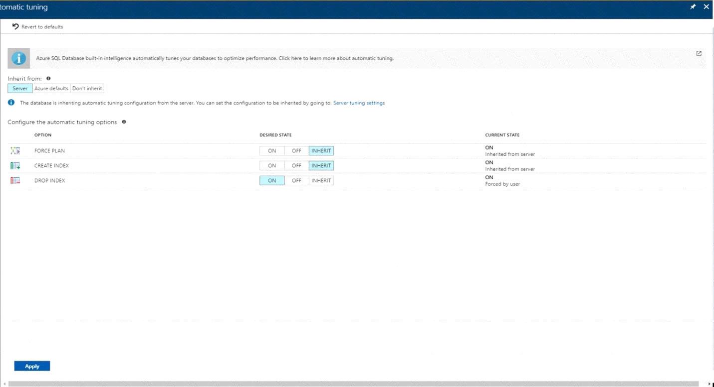 You need to ensure that queries to db1 are tuned by Azure over time. The solution must only apply to db1.
