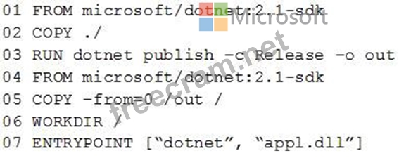 Question 112: You plan to create an image that will contain a .NET Core ap...