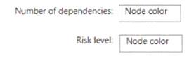 You are using the Dependency Tracker extension in a project in Azure DevOps. You generate a risk graph for the project. What should you use in the risk graph to identify the number of dependencies and the risk level of the project? To answer, drag the appropriate elements to the correct data points. Each element may be used once, more than once, or not at all. You may need to drag the split bar between panes or scroll to view content. NOTE: Each correct selection is worth one point.