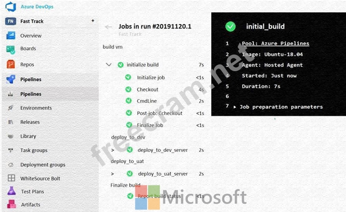 You execute a pipeline and receive the results in the web portal for Azure Pipelines as shown in the following exhibit.