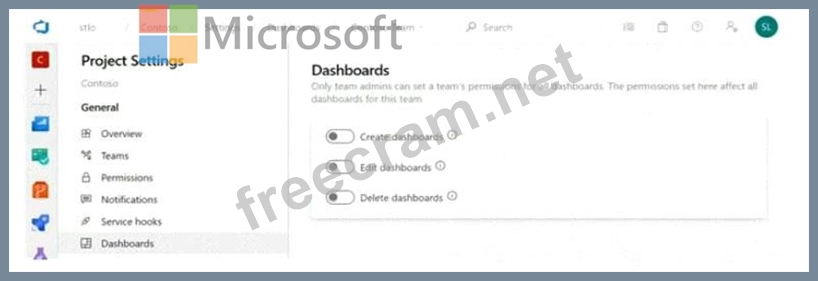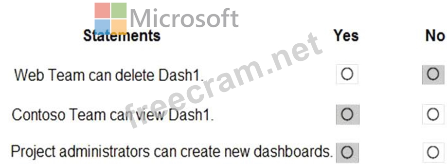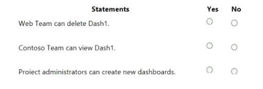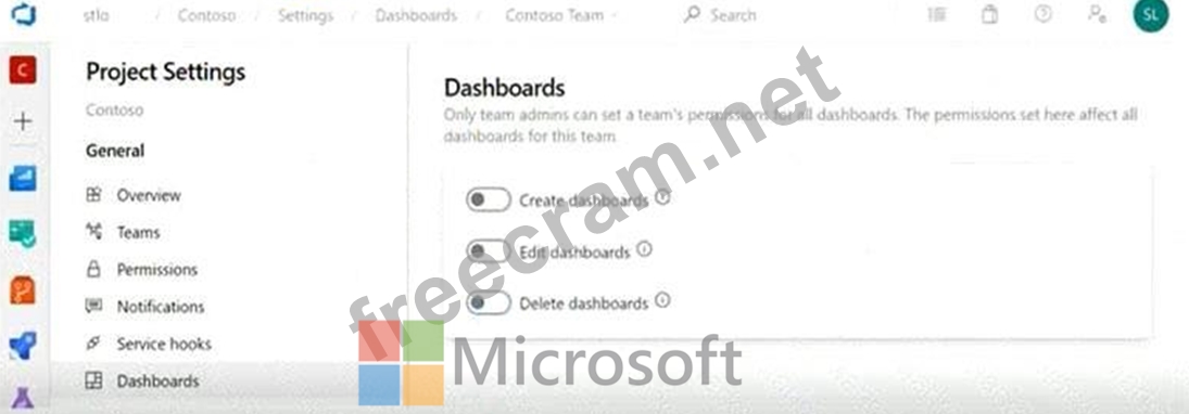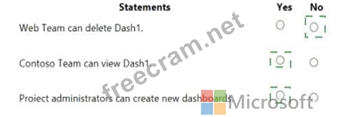 You configure the dashboard permissions for the Contoso project as shown in the Permissions exhibit (Click the Permissions tab.)