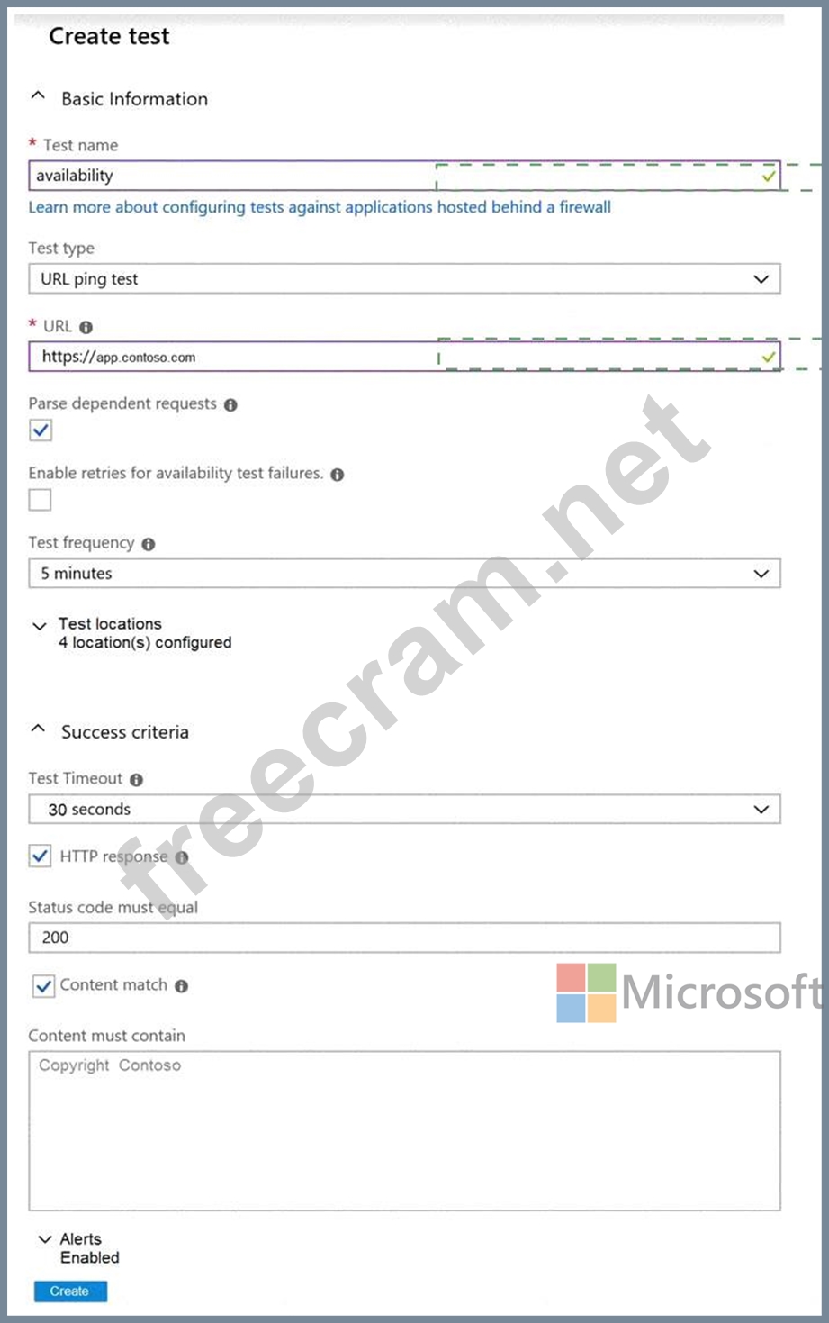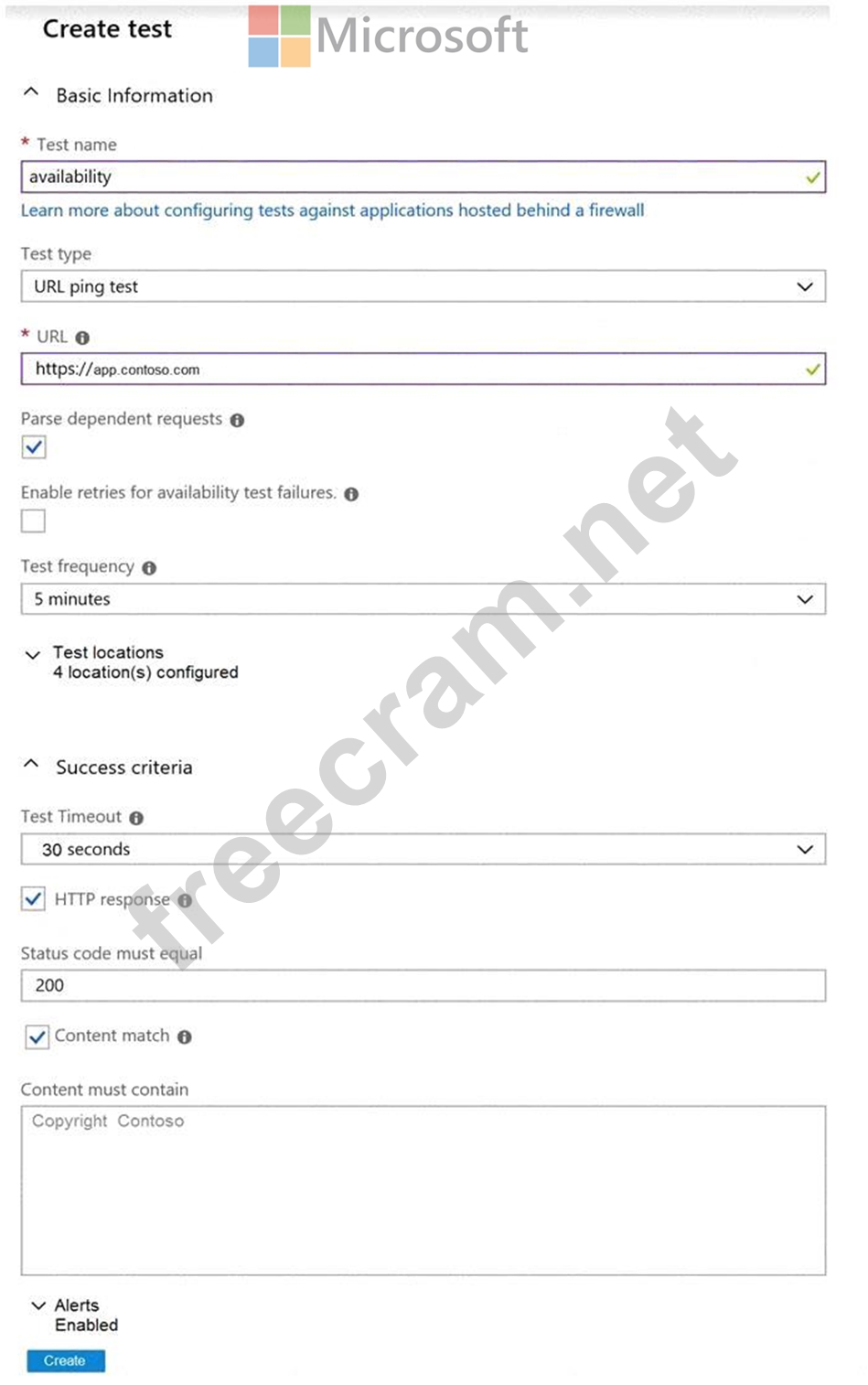 You create a test in Azure Application Insights as shown in the following exhibit.
