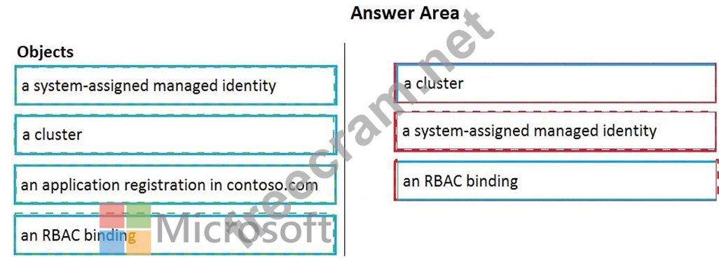 You need to provision an Azure Kubernetes Services (AKS) cluster in Subscription1 and set the permissions for the cluster by using RBAC roles that reference the identities in contoso.com.
