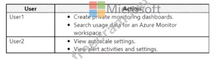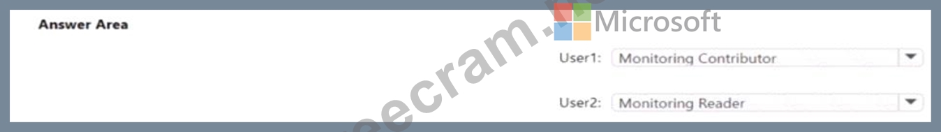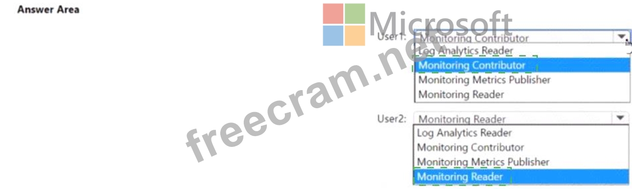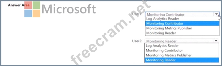 Which role should you assign to each user? To answer select the appropriate options in the answer area.