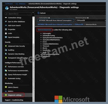Which option should you select in the Diagnostics settings of the database?