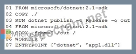You plan to create an image that will contain a .NET Core application.