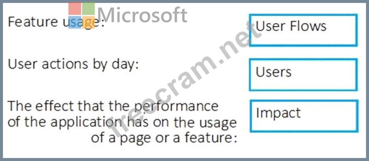 Your company wants to use Azure Application Insights to understand how user behaviors affect an application.