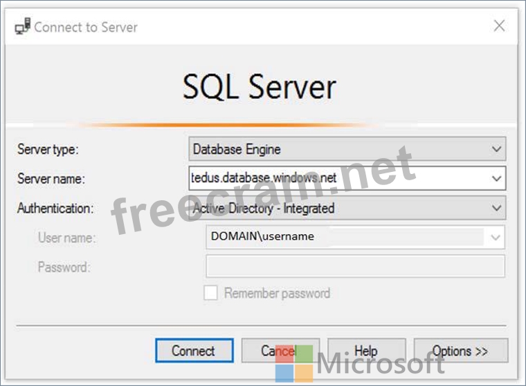 dialog box, in the Authentication box, select Active Directory - Integrated. No password is needed or can