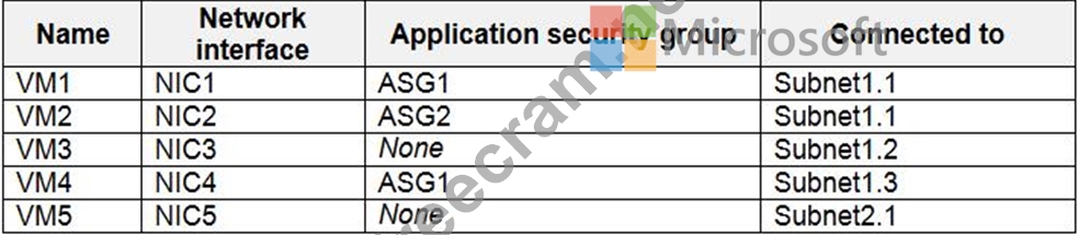 Sub2 contains the network security groups (NSGs) shown in the following table.