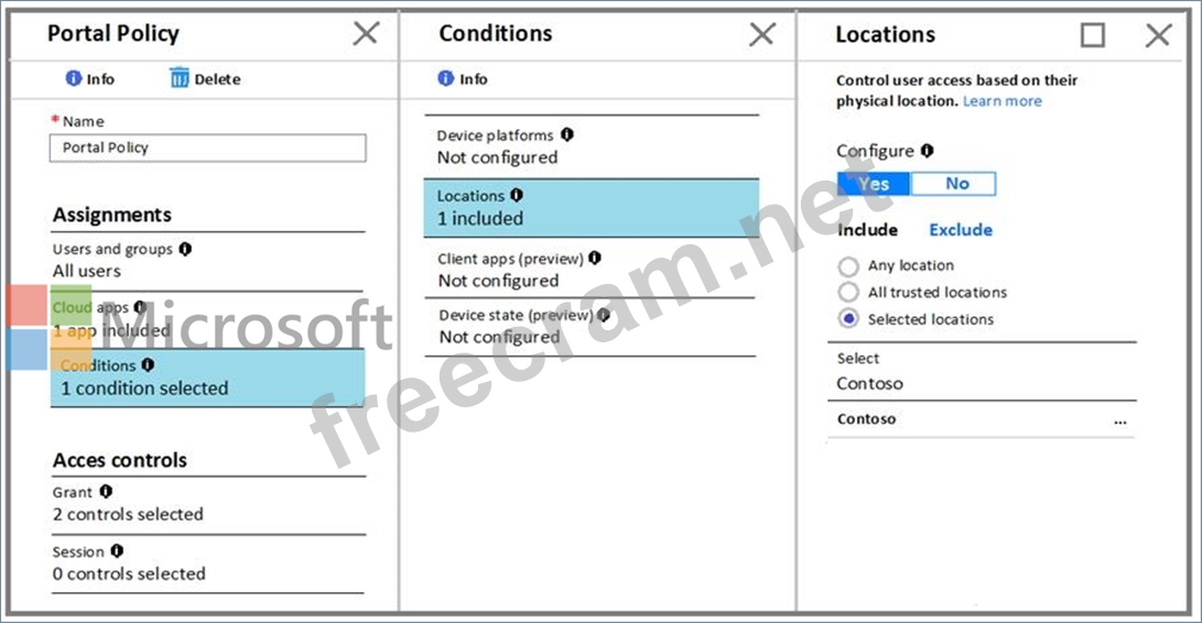 The Conditions settings for Portal Policy are configured as shown in the Conditions exhibit. (Click the Conditions tab.)