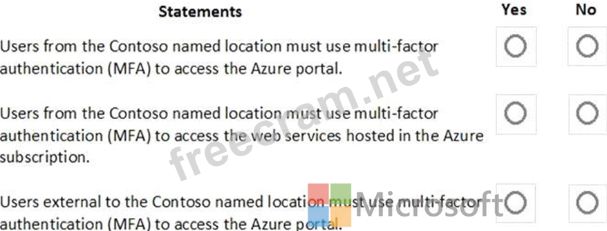 For each of the following statements, select Yes if the statement is true. Otherwise, select No.