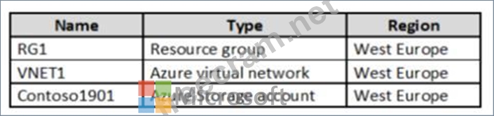 VNET1 contains two subnets named Subnet1 and Subnet2. Subnet1 has a network ID of 10.0.0.0/24. Subnet2 has a network ID of 10.1.1.0/24.
