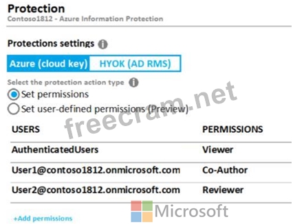 You create an Azure Information Protection label named Label1. The Protection settings for Label1 are configured as shown in the exhibit. (Click the Exhibit tab.)