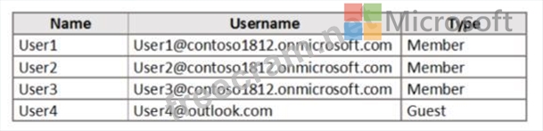 You have an Azure Active Directory (Azure AD) tenant named contoso1812.onmicrosoft.com that contains the users shown in the following table.