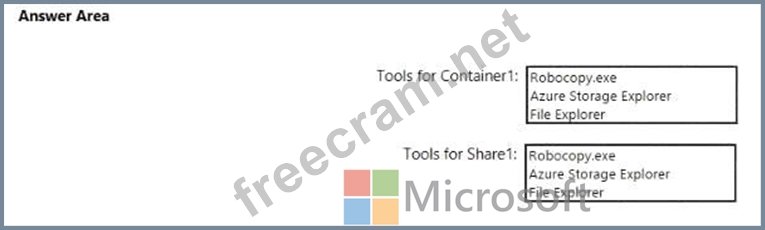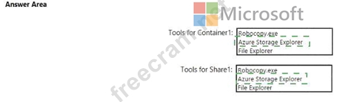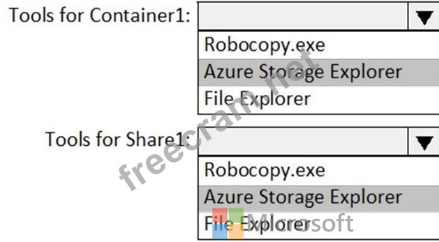 Which tool can you use to access the contents in Container1 and Share! by using the SAS? To answer, select the appropriate options in the answer area.