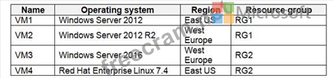 You have an Azure virtual machines shown in the following table. You create an Azure Log Analytics workspace named Analytics1 in RG1 in the East US region. Which virtual machines can be enrolled in Analytics1?