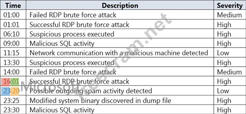 On Tuesday, Security Center generates the security alerts shown in the following table.