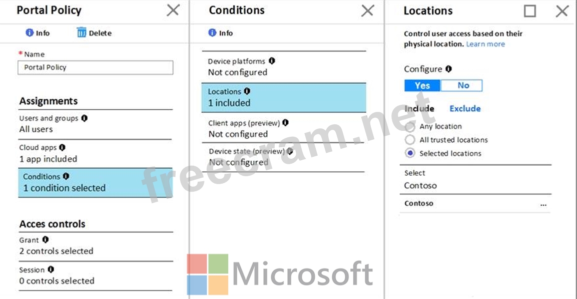 The Conditions settings for Portal Policy are configured as shown in the Conditions exhibit. (Click the Conditions tab.)