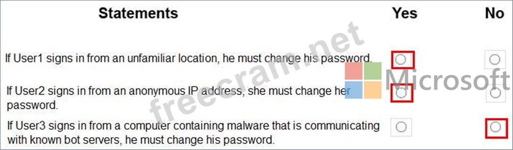 For each of the following statements, select Yes if the statement is true. Otherwise, select No.