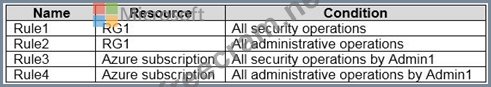 Which rules will trigger an alert as a result of the actions of Admin1? To answer, select the appropriate options in the answer area.