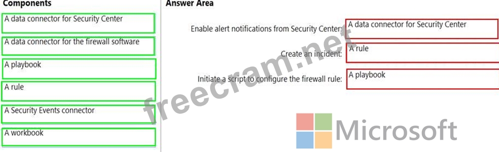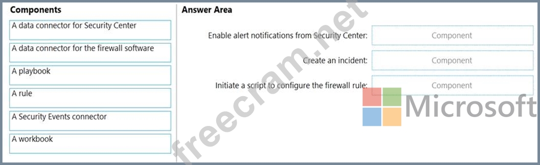 How should you configure Azure Sentinel to meet the requirements? To answer, drag the appropriate components to the correct requirements. Each component may be used once, more than once, or not at all. You may need to drag the split bar between panes or scroll to view content.
