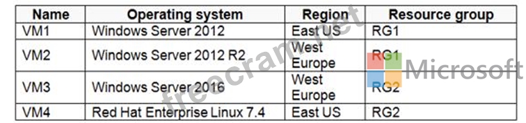 Note: Create a workspace In the Azure portal, click All services. In the list of resources, type Log Analytics. As you begin typing, the list filters based on your input. Select Log Analytics. Click Create, and then select choices for the following items: Provide a name for the new Log Analytics workspace, such as DefaultLAWorkspace. OMS workspaces are now referred to as Log Analytics workspaces. Select a Subscription to link to by selecting from the drop-down list if the default selected is not appropriate. For Resource Group, select an existing resource group that contains one or more Azure virtual machines. Select the Location your VMs are deployed to. For additional information, see which regions Log Analytics is available in. Incorrect Answers: B, C: A Log Analytics workspace provides a geographic location for data storage. VM2 and VM3 are at a different location. D: VM4 is a different resource group. References: https://docs.microsoft.com/en-us/azure/azure-monitor/platform/manage-access