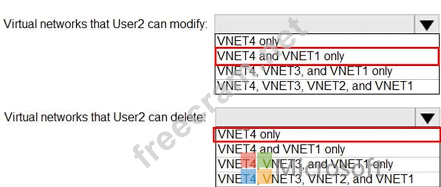 Question 95: Which virtual networks in Sub1 can User2 modify and delete i...