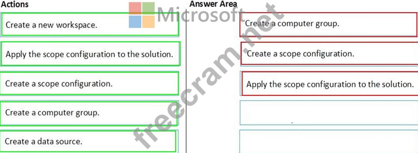 Which three actions should you perform in sequence? To answer, move the appropriate actions from the list of actions to the answer area and arrange them in the correct order.