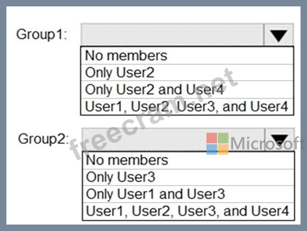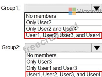 What is the membership of Group1 and Group2? To answer, select the appropriate options in the answer area.