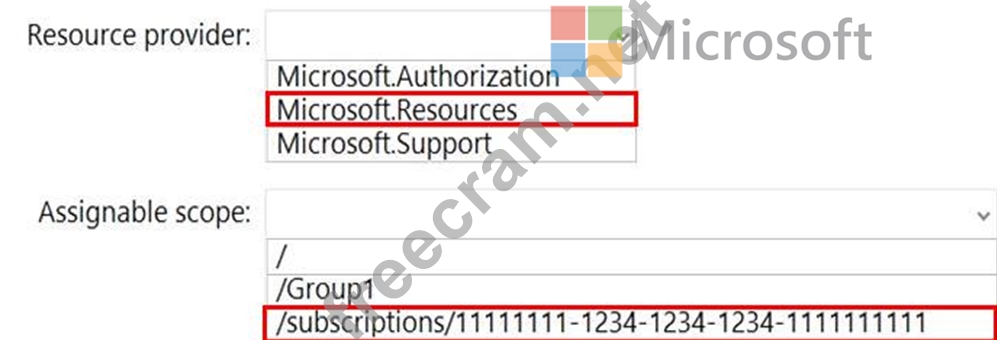 You have a management group named Group1 that contains an Azure subscription named sub1. Sub1 has a subscription ID of 11111111-1234-1234-1234-1111111111.